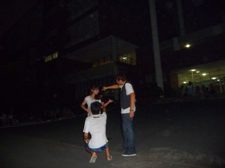 简单而隆重的中秋晚会开始后,理科楼前欢呼声一片。晚会由10级网络二班的卓世平和陆宏志主持,在他俩的幽默风趣的开场白后,同学们精心准备的节目一一上演,大一新生们踊跃上台,为大家带来的精彩吉他演奏《暖暖》、歌唱节目《朋友》等,旋律动人;由青砖协会带来的舞台剧《推销中秋月饼》更让在场观众忍俊不禁,营造了轻松愉悦的氛围。随后,伍接朝和禹敏老师也深受现场热烈的气氛感染,纷纷上台献歌,表达了对新生深深的关爱和祝福,把晚会的现场气氛推向了高潮。最后,大一新生分成两个方阵,相互拉歌,嘹亮的歌声在唯美的夜空回响,学院领导和老师为新生分发了中秋月饼,祝福大家中秋愉快,学习进步。