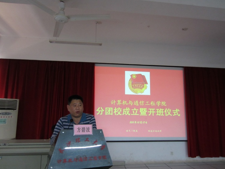 10月18日,计通学院分团校成立暨开班仪式在理科楼B311隆重举行。院党委副书记方碧波副教授、院分团委书记任志祥老师出席。我院团委学生会全体成员及各班班干参加大会。仪式由分团校常务副校长、院学生会主席团成员彭向东同学主持。