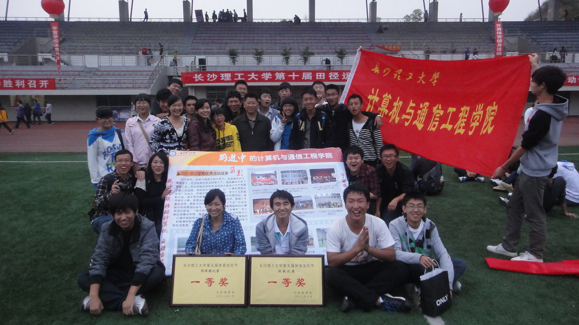 在本届校运动会赛场上,计通学院的运动健儿们挥洒汗水,奋勇拼搏,他们用自己的飒爽英姿诠释了拼搏向上,勇于进取的竞技体育精神。我院团体操队员们经过一个多月的刻苦训练,在校体育文化节上展示了计通学院最青春,最活力的一面,精彩的表演获校第五届体育文化节一等奖。我院制作的“前进中的计算机与通信工程学院”展板在437必赢会员中心第五届体育文化节板报比赛中荣获一等奖。