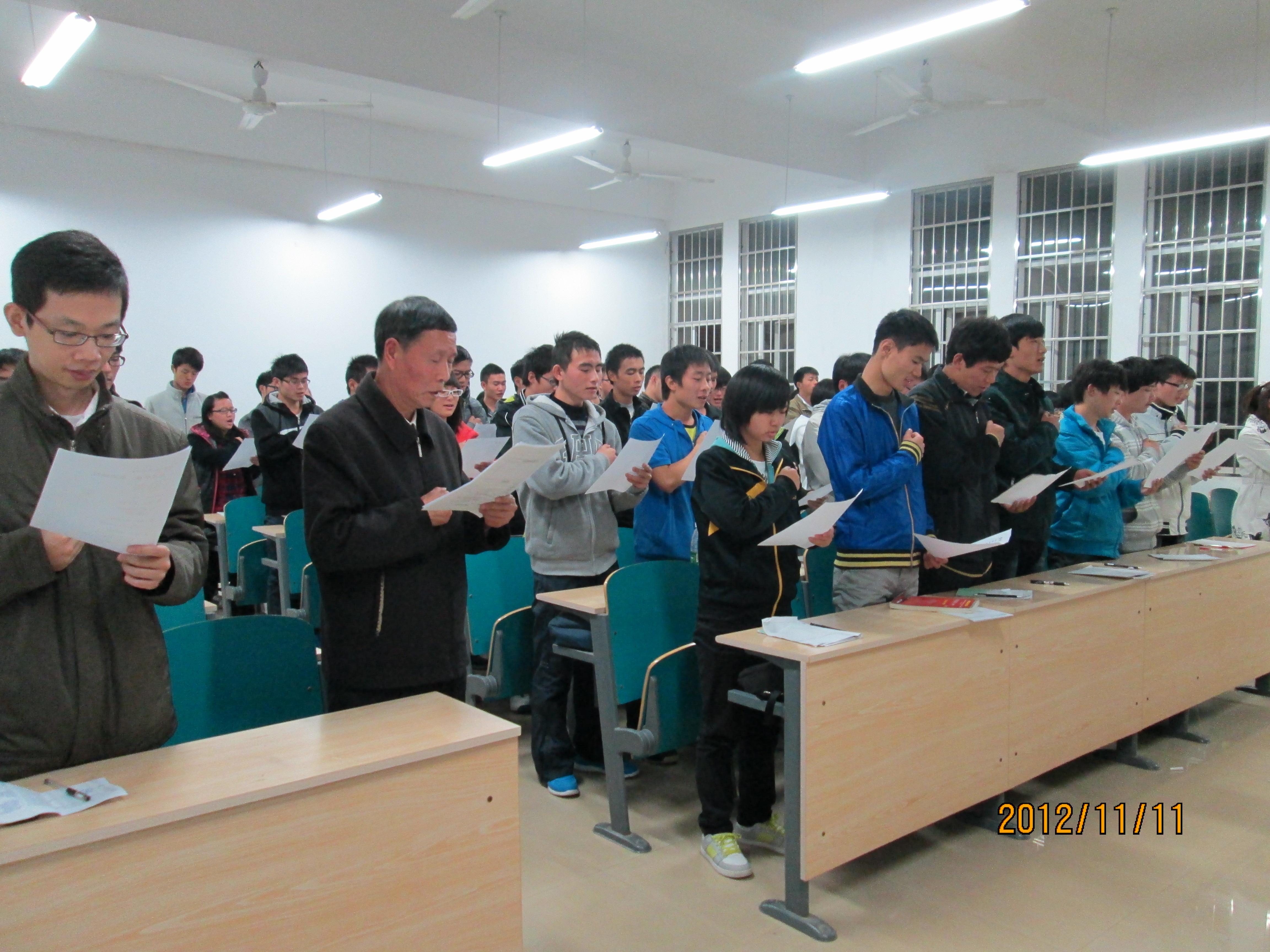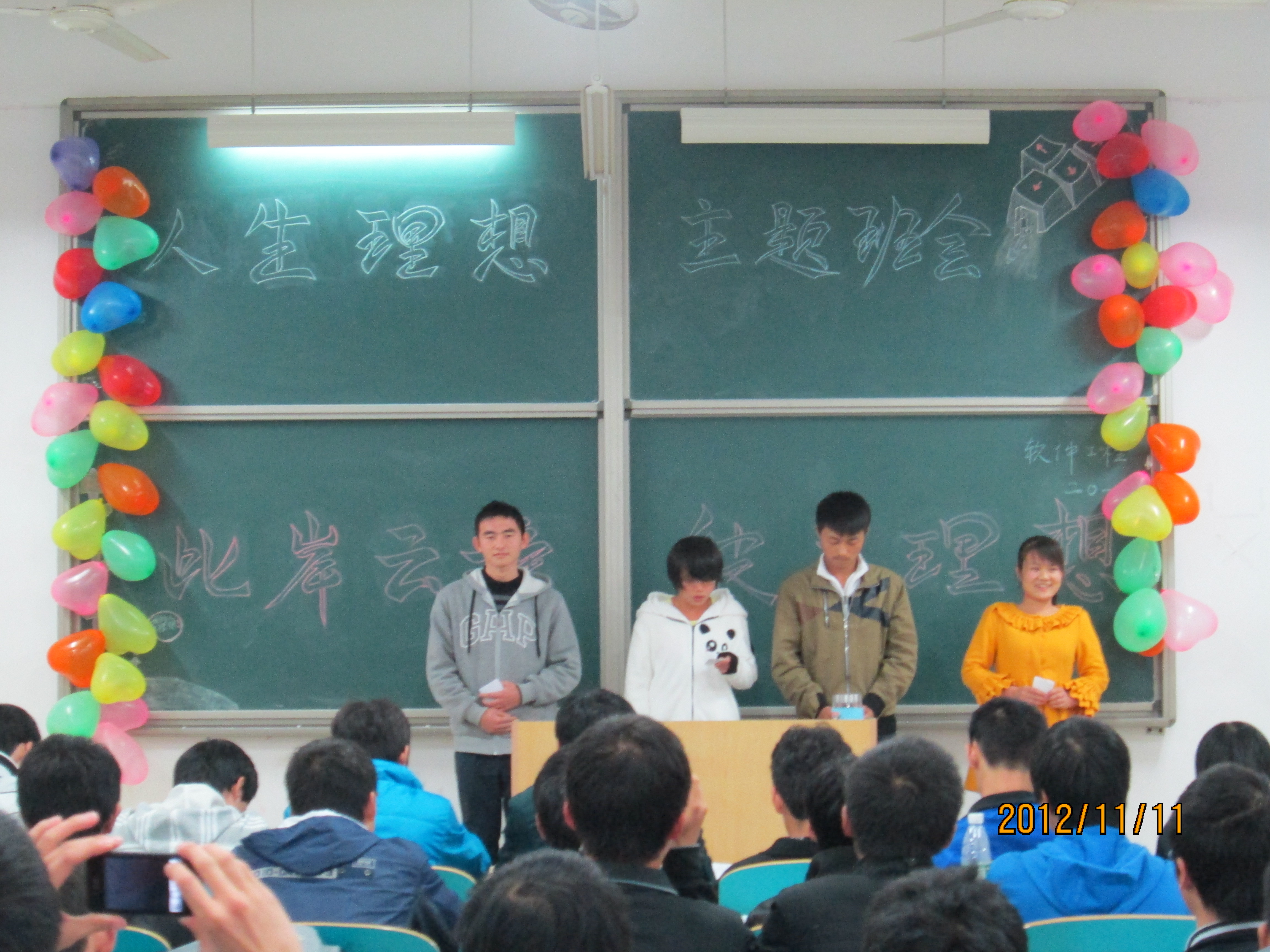 11月11日,计算机与通信工程学院2012级软件工程专业在理科楼B123召开了大学生“人生理想”主题教育班会。与会的来宾有:437必赢会员中心关心下一代委员会副主席雷理成老师,软件工程1201班班主任邓泽林老师,软件工程1202班班主任罗元盛老师,计算机与通信工程学院2012级辅导员张智敏老师。2012级软件工程专业全体同学、下班党员魏靖、郭鹏飞,下班干部黄林康以及其他专业各班代表参加班会。