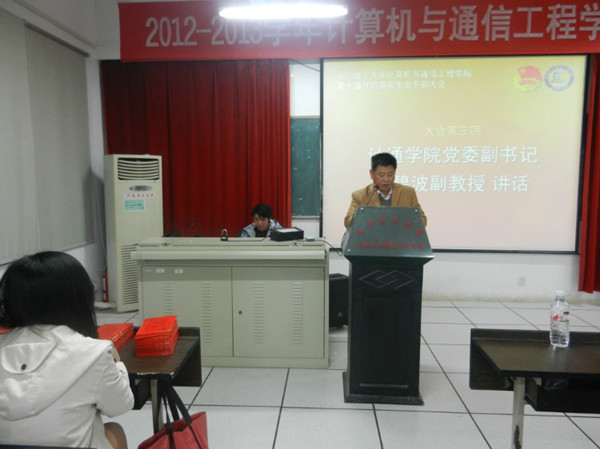 听取了陆宏志和聂老师的汇报后,院党委方碧波副书记进行总结发言。方副书记首先对团学工作进行了肯定,他表示今年是建团九十周年,又正值党的第十八次全国代表大会隆重召开之际,计算机与通信工程学院本届团学干部第一次全体大会的召开意义重大,他指出,共青团肩负着团结带领广大青年为党和人民事业而奋斗的光荣任务。共青团组织一定要适应新形势,以改革创新精神推进各项工作和自身建设,更好履行组织青年、引导青年、服务青年、维护青少年合法权益的职能,不断提高共青团工作科学化水平。方副书记还对团学干部提出三点希望:第一,希望学生干部深入学习贯彻党的十八大精神,提高思想认识;第二,坚定团学工作的发展方向加强自身建设,要求真务实打基础,改革创新求发展;第三,要有重点,有目标地扎实开展工作,积极主动引导和服务青年学生成长成才。会议现场还由方副书记等领导老师为第十届分团委学生会成员颁发聘书,鼓励学生干部继续努力,开拓进取,再创团学工作新辉煌。