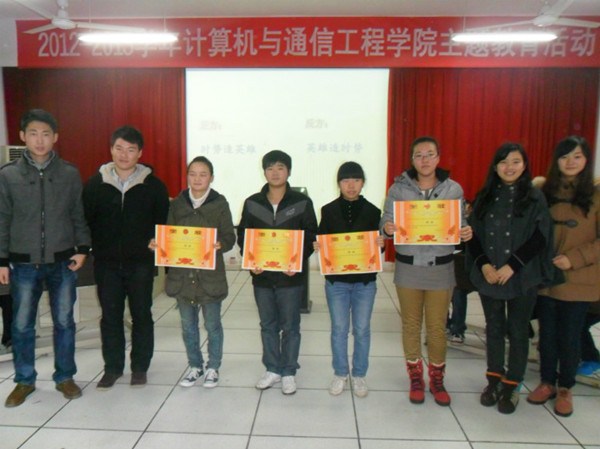 本次辩论赛为期一个月,最终网络工程代表队和通信工程代表队进入决赛,展开对“时势造英雄”还是“英雄造时势”的激烈辩论。双方辩手针锋相对,你来我往,通过各种资料多角度地论证己方观点,现场气氛迅速升温。选手们清晰的思路,精辟的语言,犀利的言辞不时引起观众的热烈反响。最终通信工程专业代表队以微弱优势获得最终的胜利。分团委书记聂静老师等为获胜队伍颁奖,并颁发最佳辩手证书和优秀工作者证书。