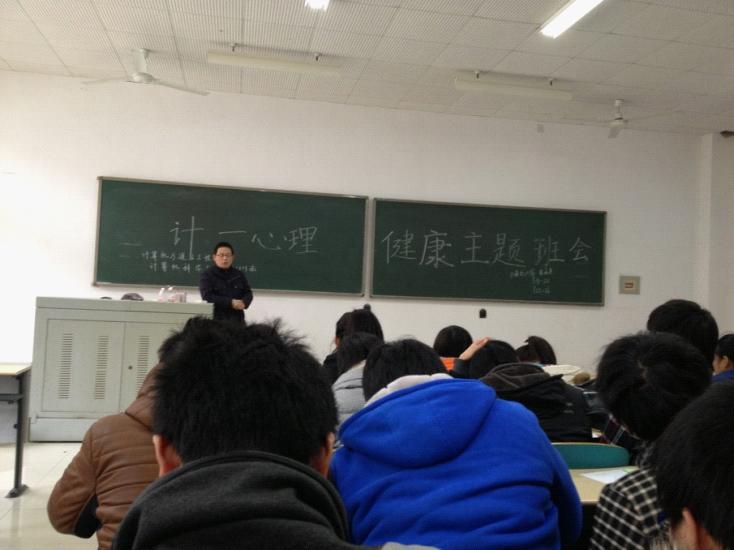 20121210日,计通学院组织1211个新生班级开展了为期一周的阳光心理,快乐启航”的心理健康主题班会。班会由辅导员或班主任主持,新生全体积极参加。