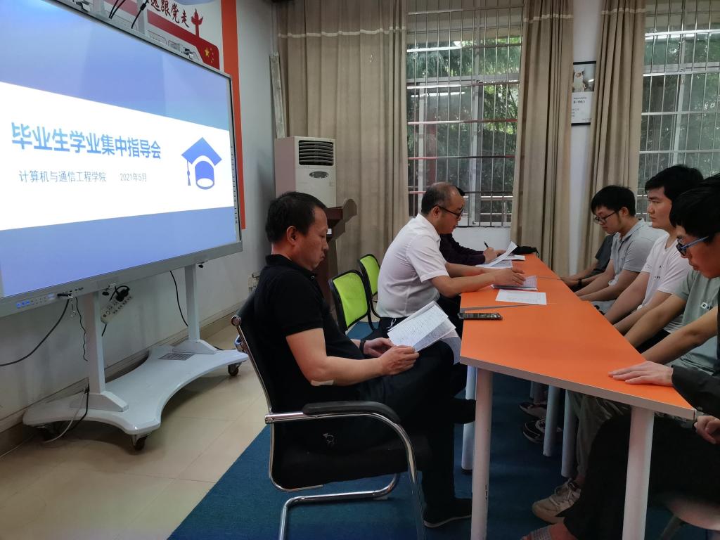 5月28日下午,计通学院在理科楼B103召开了毕业生学业集中指导会。学院党委书记刘宏伟、副院长王威、副书记涂道勇出席。17级辅导员潘枝花及就业辅导员聂静参会,40余名毕业生参加。