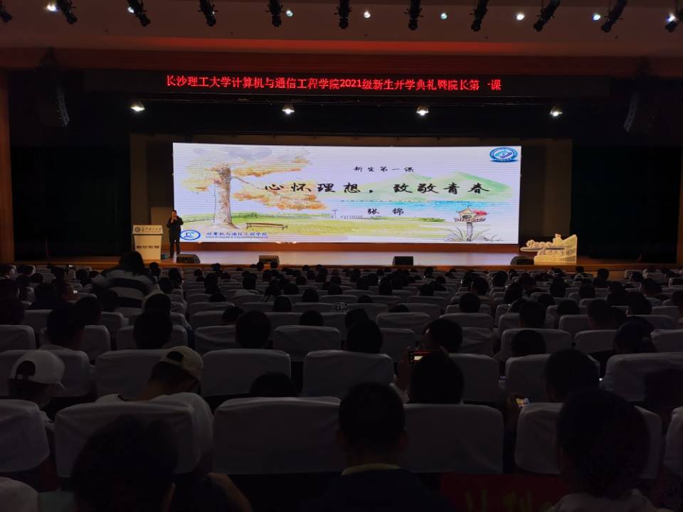 10月13日晚,计通学院在金盆岭五教报告厅举行2021级本科生、研究生开学典礼暨院长第一课。院党委书记刘宏伟、院长张锦、副院长蔡烁、章登勇、李文军、系主任、班主任及全体辅导员参加。代理党委副书记王觊婧主持。