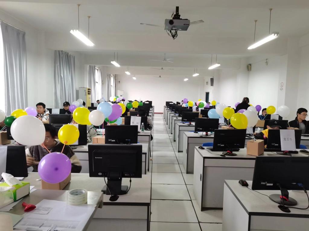 此次比赛采用团队合作积分制,每个队分别有三人。比赛题目难度由简到难,题目下来后,同学们立即争分点秒的开始动手编程,整间教室都可以听到大家的键盘被敲击的声音。虽然有些题目令同学们很是苦恼,但同学们都非常认真的遵循考试规则。时间就这样在同学们的指尖悄然而过,而本次比赛也在五个小时的没有硝烟的战场中结束。最终,10位同学获一等奖,19位同学获二等奖,29位同学获三等奖。