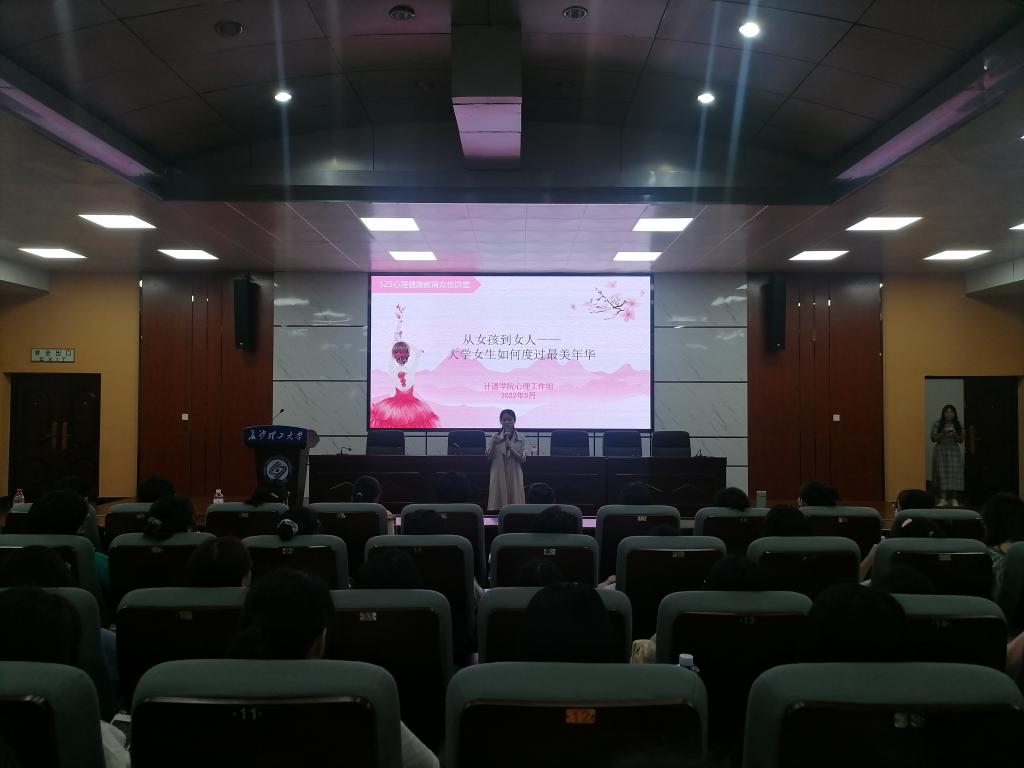 524日下午,计通学院在金盆岭四教报告厅开展“525”女生专场心理健康教育讲堂,学院心理辅导员潘枝花主讲“从女孩到女人——大学女生如何度过最美年华”。
