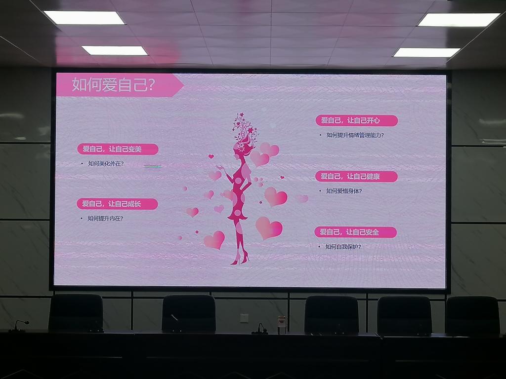 潘枝花从“爱己”和“爱人”两个部分,告诉女生们如何学会爱自己和爱他人。在“爱己”篇,她教授了女生们如何在仪容仪表方面提升外在形象,通过学习、培养发展兴趣爱好提升内在,传授了悦纳自我、积极暗示、转移注意等调适情绪的方法,从饮食、运动方面告诉女生们如何保持健康的身心体态,以及如何保护自己的安全。