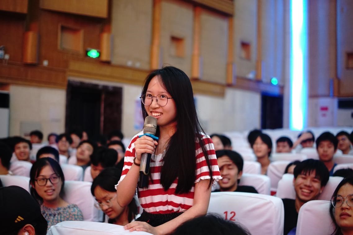 随后,刘洋根据实际数据,从平均绩点、四级通过率、挂科率等方面做了学情分析,并介绍了学院新设自习室和先锋辅学活动,助力先锋学习。刘俊结合真实案例,围绕宿舍管理、电信诈骗、遵纪守法等方面做了日常管理教育,让在场IT先锋清晰地认识到可为与不可为的边界。接着,大会表彰了40名在学习和工作中表现优异的IT先锋,并由王觊婧、刘洋、刘俊为其颁发证书。最后,学生代表柳瑜琪、宋品通、袁诚功分别分享了他们的学习经验与志愿经历,赢得了现场IT先锋的阵阵掌声。