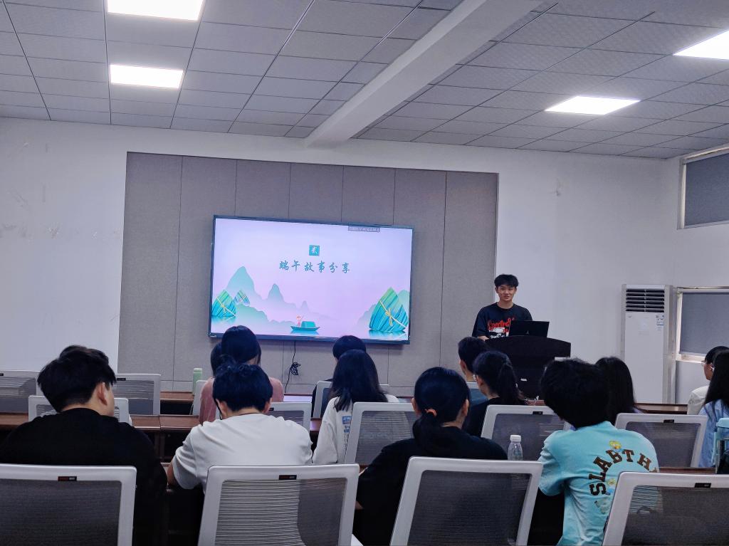 活动伊始,辅导员唐菲楠发表了讲话,强调了传统文化传承的重要性,并鼓励学生们通过亲身实践来深入了解和学习传统文化。随后,通过小组分享有关端午的习俗小故事、观看端午节日视频、组织开展端午趣味知识竞赛抢答活动来活跃现场氛围,引人入胜。