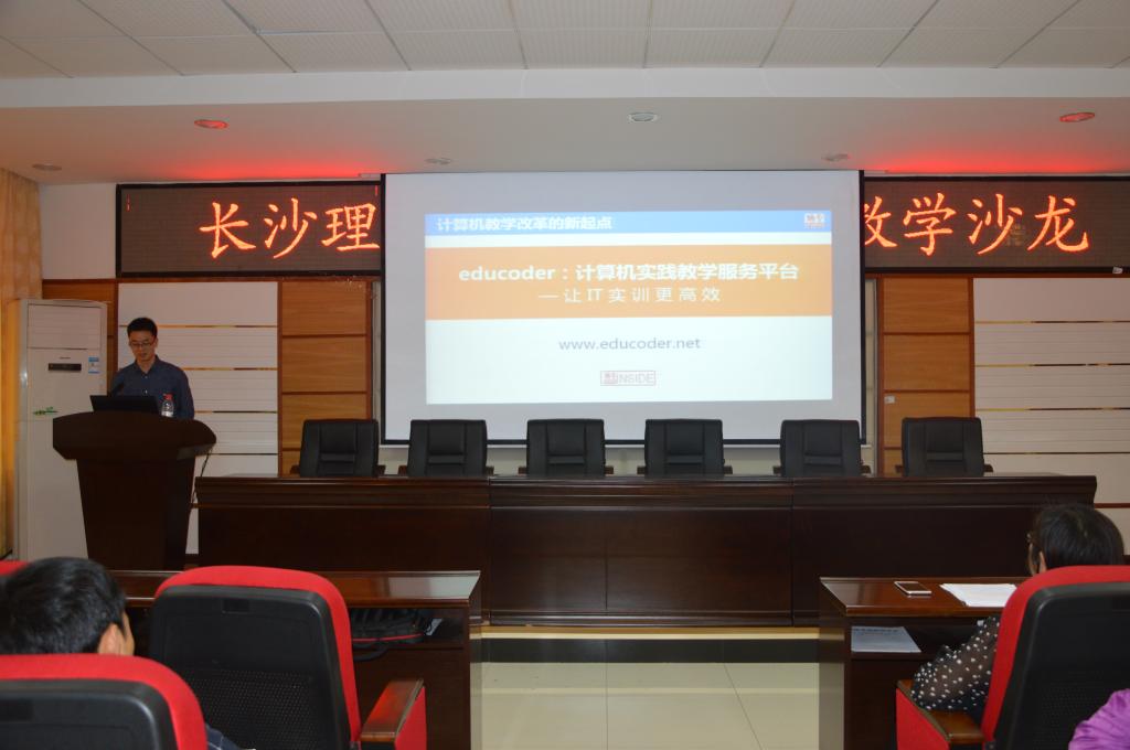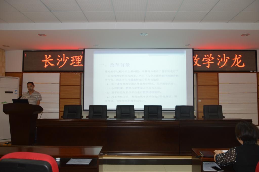 邓泽林副教授介绍了我院面向问题课程群的教学改革情况,包括教学内容的整合,以及研讨式、小班制、OJ、智慧教室等教学方式和教学手段改革,经过改革增强了学生学习的主动性,学习效果明显提高。