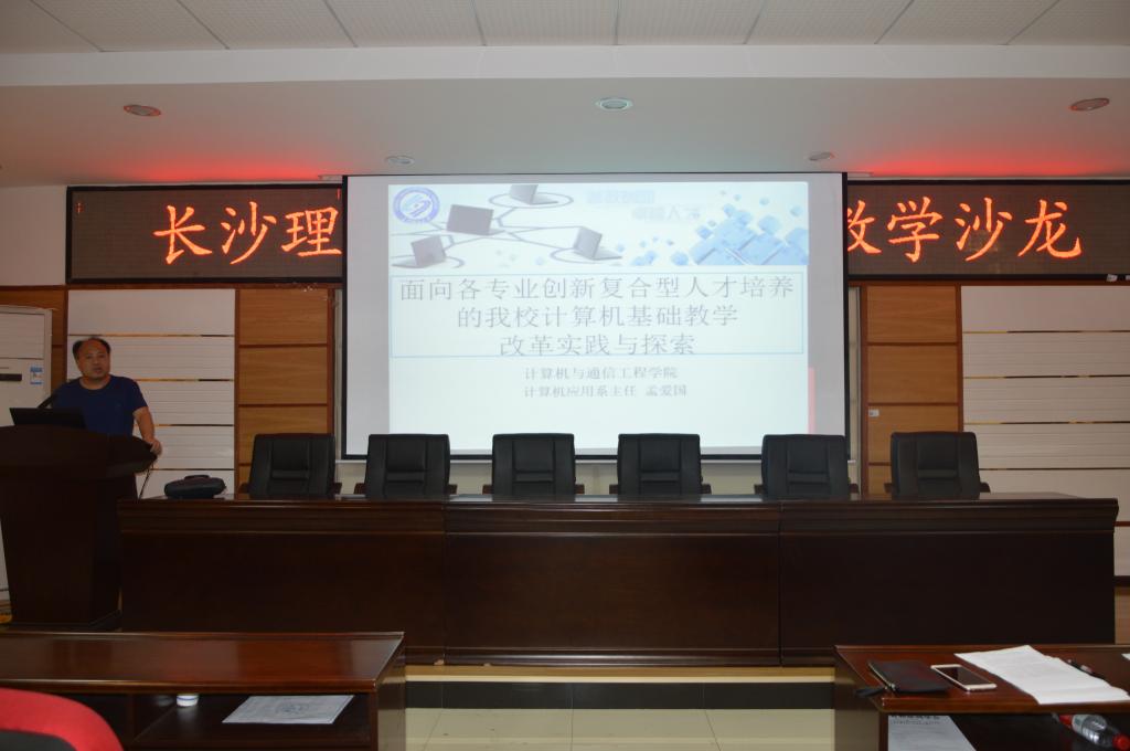 2018年6月5日下午,由教务处主办、计算机与通信工程学院承办的437必赢会员中心第十一届教学沙龙活动在理科楼B区311计通学院多功能报告厅举行,沙龙活动分为三个主题,主题一:Trustie:面向IT工程能力培养的新型教学模式与平台;主题二:面向创新复合型人才培养的必赢官网计算机公共课程教学改革实践与探索;主题三:坚持以学生为中心,颠覆传统教学模式。特邀国防科技大学计算机学院副研究员王涛博士、计通学院计算机应用系系主任孟爱国副教授、计通学院软件工程系系主任邓泽林副教授主讲。计通学院全体教师,其他学院部分教师参加了此次沙龙活动,特别邀请教务处副处长蒋菲出席。沙龙由计通学院教学副院长姜腊林主持。