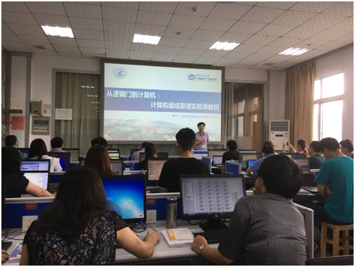 华中科技大学充分运用自身在系统能力培养方面的经验,组织“从逻辑门到CPU——计算机组成实验课程导教班”,通过创造性的计算机组成实验体系指导、调试、检查,让参加学习的全国各地教师体验硬件系列课程独有的魅力。导教班实验体系特色包括四个方面:(1)理论知识点全覆盖;(2)注重硬件思维培养;(3)零实验成本;(4)大大降低教师工作负担。导教班学习内容包括Logisim软件使用、MARS模拟器使用、汉字编码转换实验、海明编码设计实验、Cache软件仿真、单周期MIPS设计、多周期MIPS设计、气泡流水线设计等一系列核心内容。