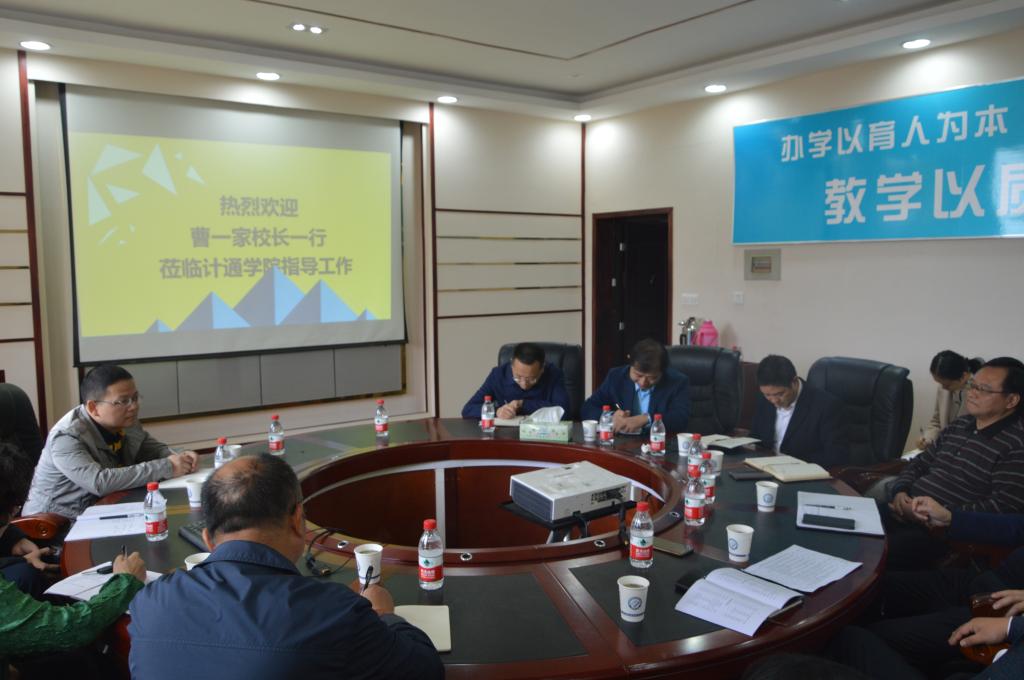 10月25日上午,曹一家校长率学校党政办、人事处、教务处、科研部、研究生学院等机关处室负责人一行到我院调研。会议在理科楼B502举行,学院领导班子全体成员参加会议。