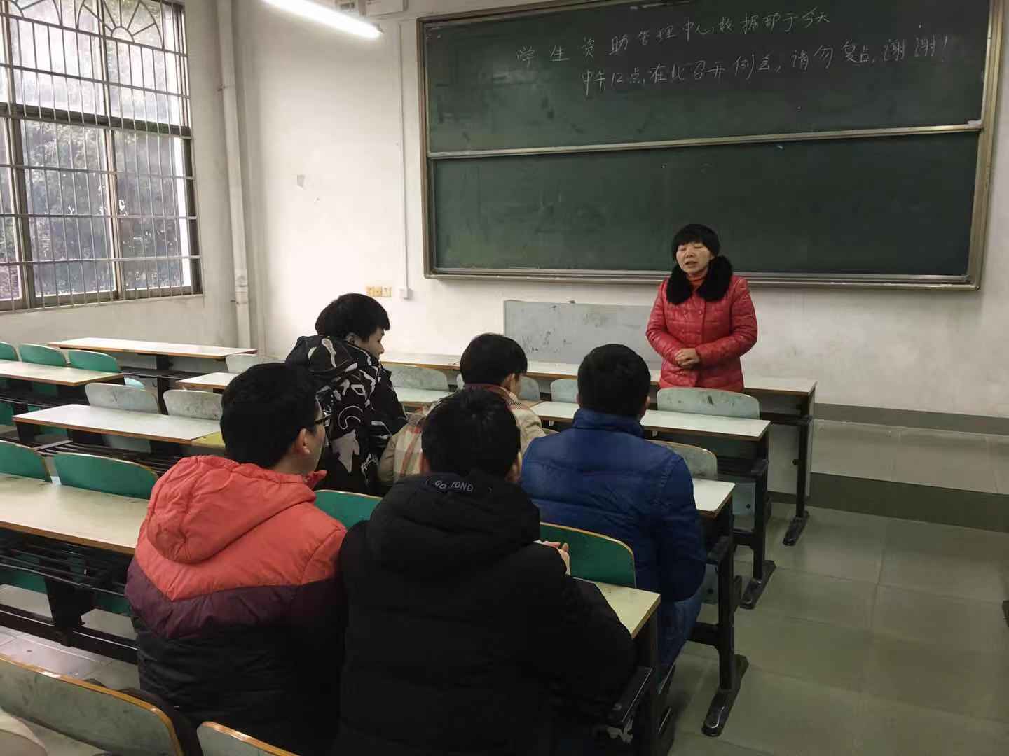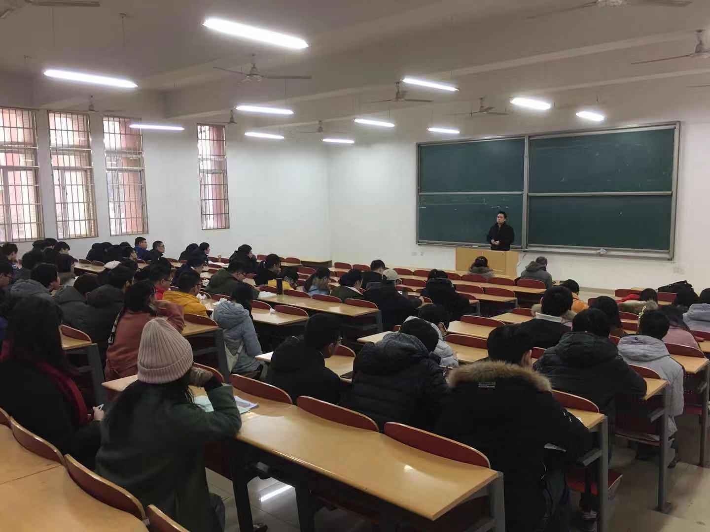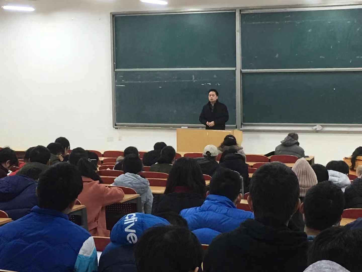 2018年12月11日上午8:30,计科系黄敏、陈沅涛在金盆岭校区6教104教室针对城南学院计科专业毕业生召开毕业设计动员活动。(因为该专业目前正在执行“[D081020085]计算机专业工程实践”环节,所以大多数学生都在外实习,在校生代表参加了动员活动)