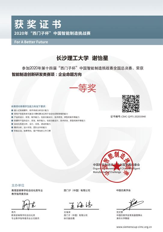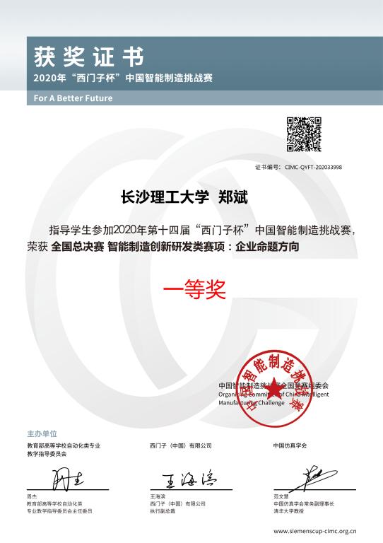 近日从刚落下帷幕的2020年第14届“西门子杯”中国智能制造挑战赛全国总决赛中传出好消息:我院谢怡星、王斌、付有等同学为代表的参赛团队在郑斌老师的带领下荣获智能制造创新研发类赛项企业命题方向一等奖。