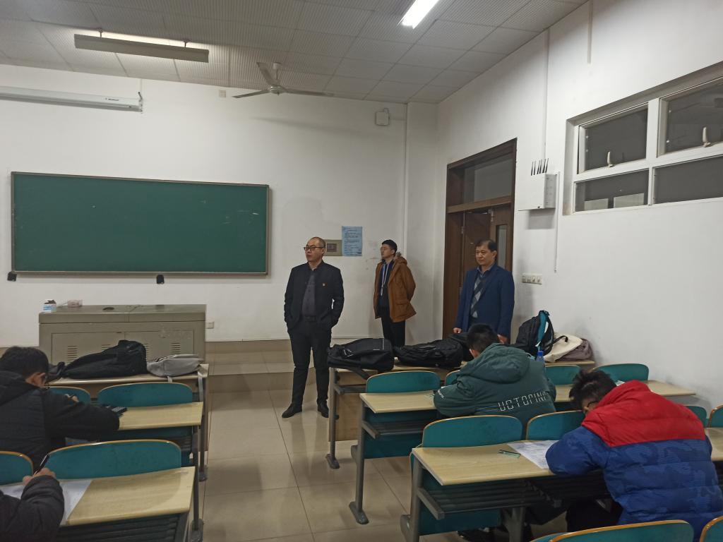 为加强学院期末考试的组织管理和考风考纪建设工作,2021年1月5日下午,计通学院党委书记刘宏伟、院长王进、党委副书记涂道勇、副院长王威和相关年级辅导员一行深入期末考试现场进行集中巡视检查。