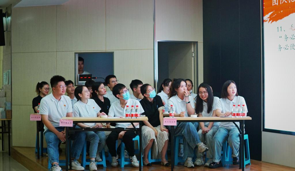 为迎接党的二十大,贯彻落实两会精神,加深广大党员对时事政治的了解,计通学院于5月30日晚在云塘校区工科三号楼A307开展“喜迎党的二十大,奋进新时代”师生党员知识竞赛决赛,21名支部学生党员代表、发展对象班全体学员以及8名教师党员代表组成8支代表队参加了本次决赛。计通学院党委书记孔伟红、党委副书记王觊婧、关心下一代工作委员会老师蔡立新出席并担任本次竞赛评委,200余名师生党员现场观看,本次比赛由学生党员刘佳婧主持。
