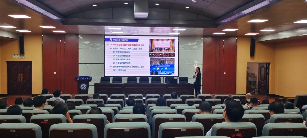 副院长何施茗对学院科研工作进行了总结和部署安排。她总结了近几年学院科研工作的情况、特点及不足,对近期的工作进行了安排,包括2024年湖南省自科申报、长沙市自科申报和国自科的准备,以及学院承办第七届中国软件开源创新大赛。她强调提升科研能力水平,更好地促进科教融汇,也是提高人才培养质量的关键。