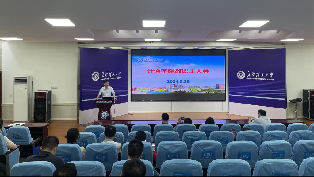 528日下午,计通学院在金盆岭校区12学楼200报告厅召开教职工大会。