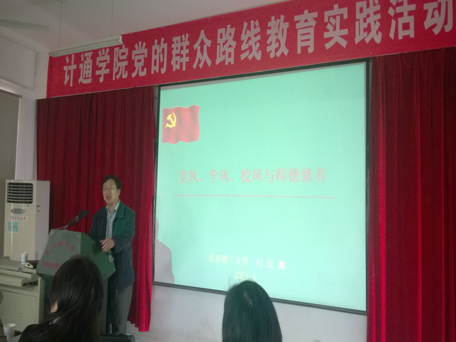 付宏渊书记结合党的群众路线教育实践活动,首先介绍了党的几代领导人对党风建设的重要论述。深入浅出地分析了强党风、学风、校风的关系:学风从根本上是党风问题,学风是一所大学的生命,是高校建设与发展的核心;党风决定办学方向,校风铸就大学精神,校风是培养合格人才的重要保证。其次,结合自身调研所掌握的情况,付宏渊书记分析了大学的困惑,他认为教师在师德方面存在的问题主要表现为政治倾向淡化、出现媚俗的价值取向,敬业精神弱化,治学不严谨、学术不规范,道德观念淡化、行为典范缺失。同时付书记在高等教育改革的宏观视野下,结合必赢官网的发展历史和现状,分析了高等教育质量面临的问题。