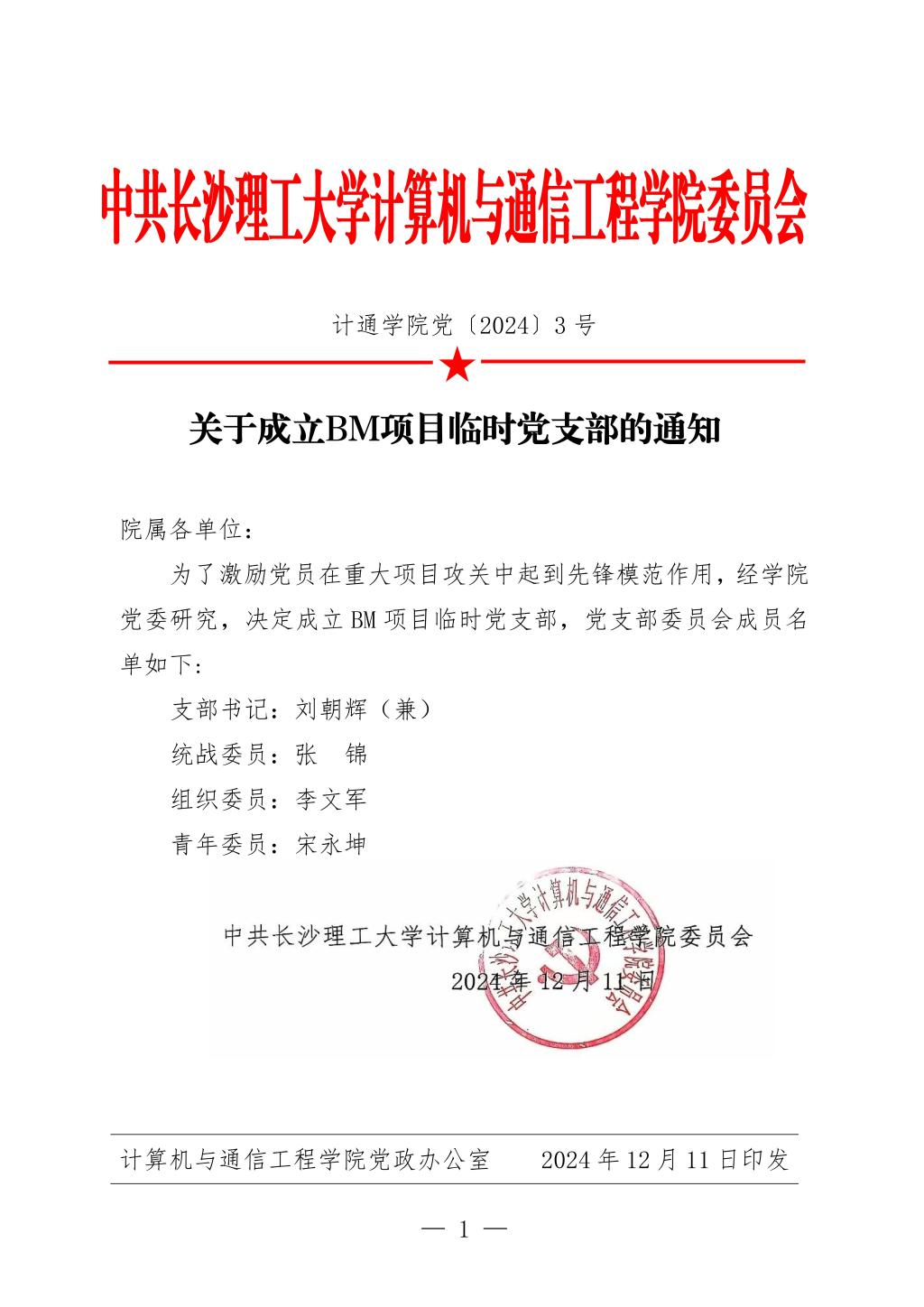 关于成立BM项目临时党支部的通知
