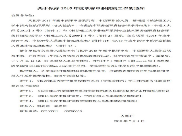 学校2015年度职称申报摸底工作现已开始,请拟申报职称的老师填好相应表格,于下周三之前交学院党政办。