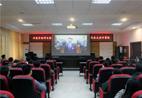 10月18日上午9:00,中国共产党第十九次全国代表大会在北京人民大会堂开幕。与此同时,计通学院没课的研究生在理科楼B311集中收看了开幕会,家中有特殊情况无法赶来学校的研究生也在家中收看了开幕会。大家怀着无比激动的心情观看十九大开幕盛况,聆听了习近平总书记代表第十八届中央委员会向党的十九大作报告。