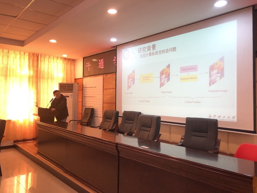 首先是伍悠同学主讲的“基于相关滤波和特征融合的目标跟踪算法” 研究。 伍悠同学从目标跟踪的应用角度切入,提出目标跟踪当前存在的难点—遮挡、光线、动态性以及相似性。结合多特征和动态学习等方法,伍悠同学提出了一种快速目标跟踪器,能够有效提高目标跟踪的效果。接下来是赵淑珍同学主讲的关于“超分辨率处理的多源遥感图像融合”研究。赵淑珍同学通过诙谐的图片,先向在座同学讲述了什么是超分辨率。赵淑珍同学讲到,多源遥感图像融合相比于单源,能表现出更多的特征,对场景的描述更加准确,有助于定位识别和后期分类。最后是由李捷同学主讲“基于低秩张量补全的图像修复”研究。李捷同学讲到,低层计算机视觉的问题是逆向的,因为这些问题要求根据从三维到二维变换后的输出来进行重构。考虑到逆问题往往是不适定的,李捷同学结合低秩张量来修复图像,能够很好的刻画图像高维数的本质结构,利用已知的数据元素恢复丢失的元素。