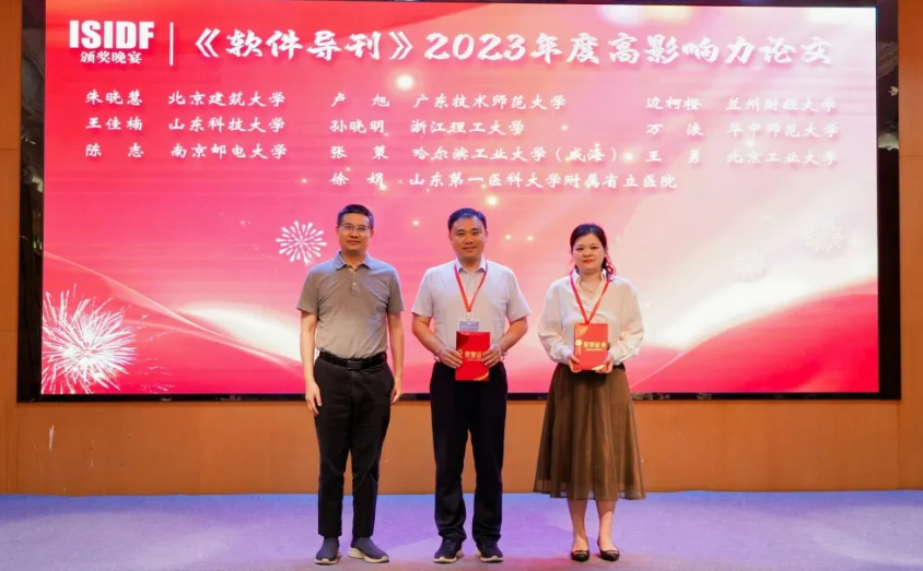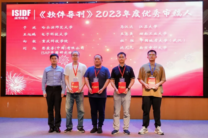 颁奖晚会由湖北省软件行业协会秘书长、大会程序委员会主席李智勇主持,湖北省科技信息研究院党委委员、副院长盛建新作了讲话。《软件导刊》主编、大会主席何炎祥教授,评审委员会主席、《软件导刊》副主任编委吴黎兵教授、毛新军教授分别为2023-2024年度“优秀编委”“优秀审稿人”和“高影响力论文”获奖代表颁奖。大会主席宁振波研究员为大会合作单位颁发感谢状。