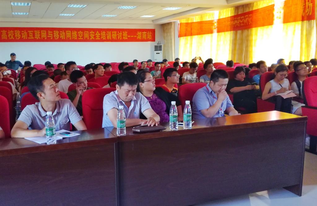 参与此次培训的有湖南各高校老师和学生。培训开始由437必赢会员中心计通学院院长李峰和蓝盾股份教育事业部区域总监袁杰致辞。希望各位参赛者能认真准备、完成此次比赛。第一天的培训主要是对网络安全大赛的赛制以及比较常用的工具以及知识内容进行了详细的讲解。让参赛者对此次比赛有大致了解。培训第二天,主要是上机操作培训,由蓝盾股份信息安全顾问邓岩华以及高级讲师熊烨主讲,其主要目的让参赛者熟悉网络安全大赛的实战操作环境。在培训中,还给参赛者们一些往年的参赛题目作为练习以便他们更快适应比赛的操作平台,并给他们讲解题目的解题思路和技巧。