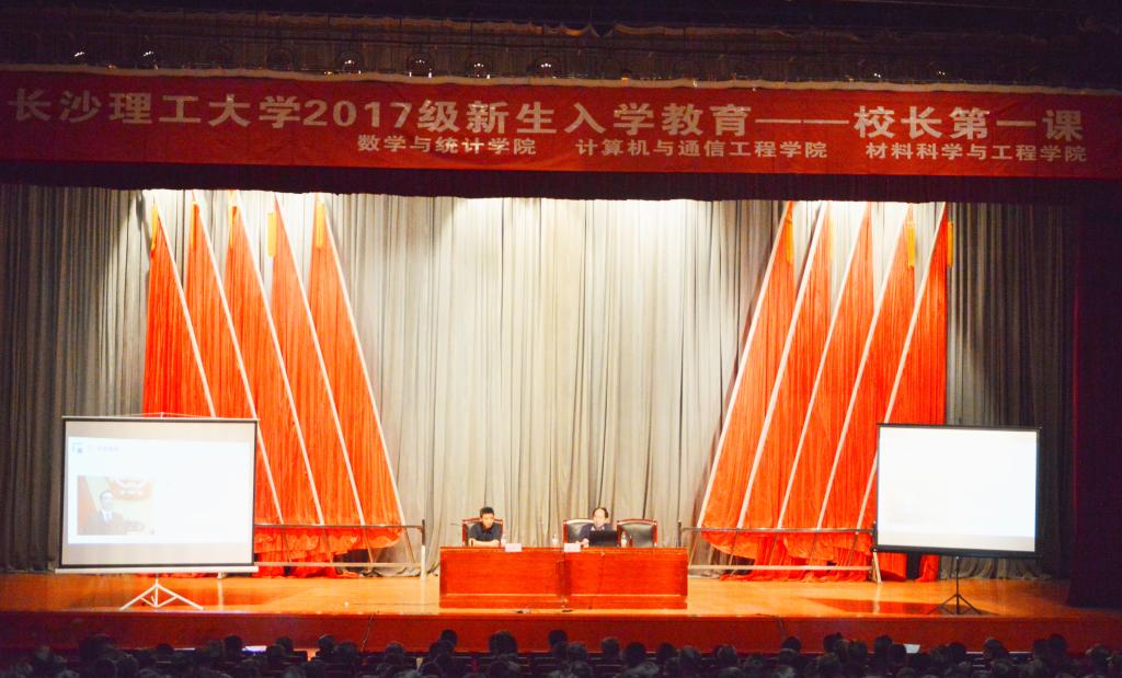 9月15日晚7:00,活动准时在大会堂开展,新生着整齐的军装提前有序入场。首先,主持人为在座人员介绍到场的领导。接下来便进入了活动正题,由黄立宏副校长对新生进行入学教育暨校长第一课。黄校长首先为新同学介绍了必赢官网的发展历史,2003年4月,原国家交通部所属的长沙交通学院和原国家电力公司所属的长沙电力学院合并组建成437必赢会员中心,从此之后,学校发展十分迅速,建成了水平较高、特色鲜明的本科教育教学体系,如今更是在争创“双一流”的道路上奋力前行。