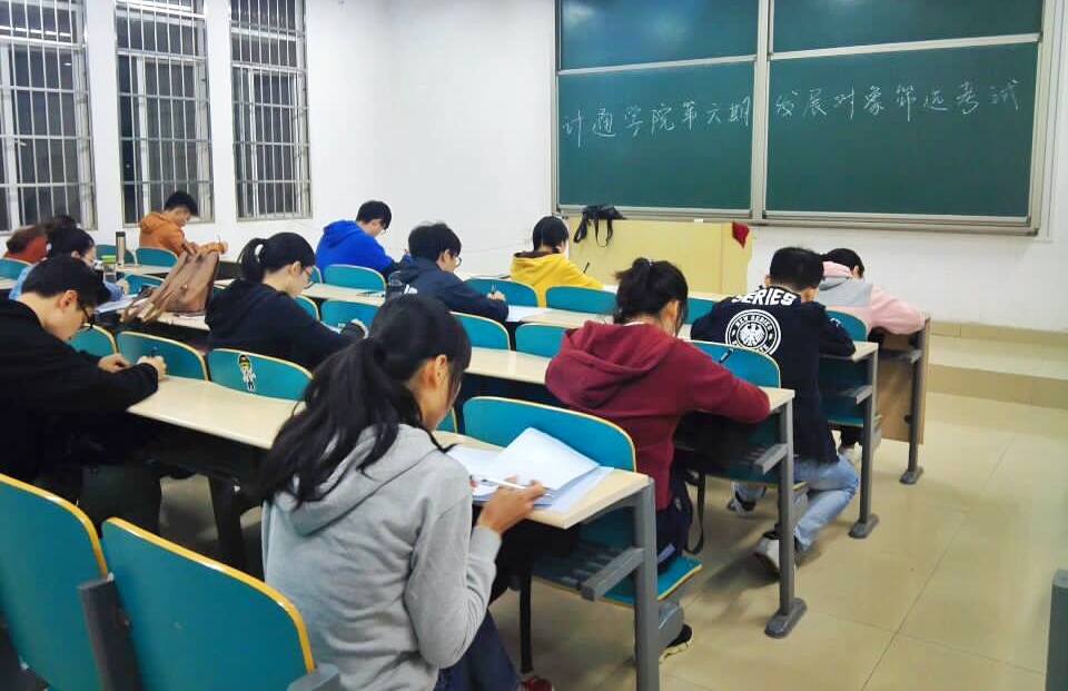 为考察团推优人员的对党的基本理论知识的掌握程度和时政讯息的关注程度,计通学院在理科楼B121、B123、B125分别举行了入党积极分子和发展对象筛选考试,学院中已推优的学生参加了本次考试。