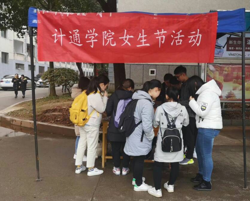 3月7日晚,计算机与通信工程学院在金盆岭校区西苑食堂前坪举行了为时三个小时的“3.7女生节”主题活动,计通学院的同学前来参加。