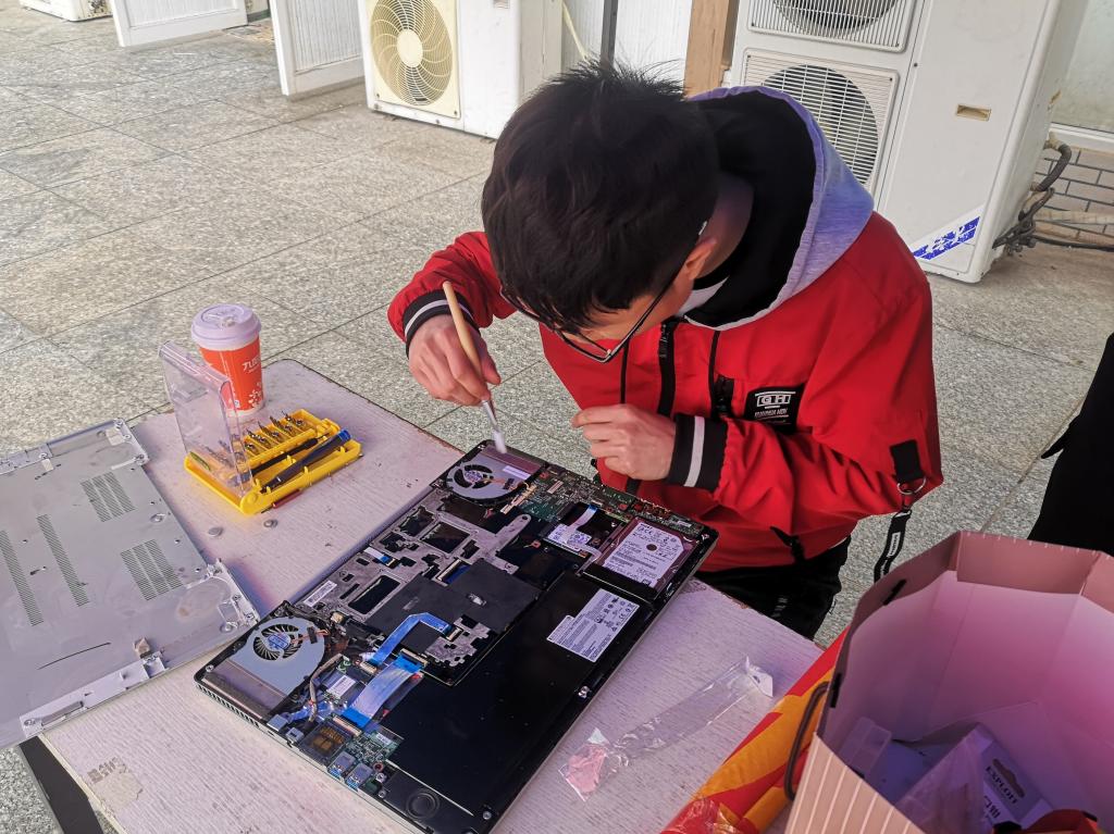 与此同时,一些新队员们在电脑维修过程中,抱着认真学习的态度,在一旁一边细细观察维修的基本操作:清灰、瘦身优化等等,一边积极提问,收获颇丰。现场处于一片其乐融融的气氛中。