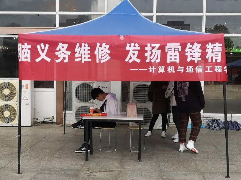 3月24日上午,计通学院IT精灵义务维修队在云塘校区汀香园前坪开展了一整天的电脑义务维修摆点活动。此次活动由计通学院团委学生会青志协组织举办。