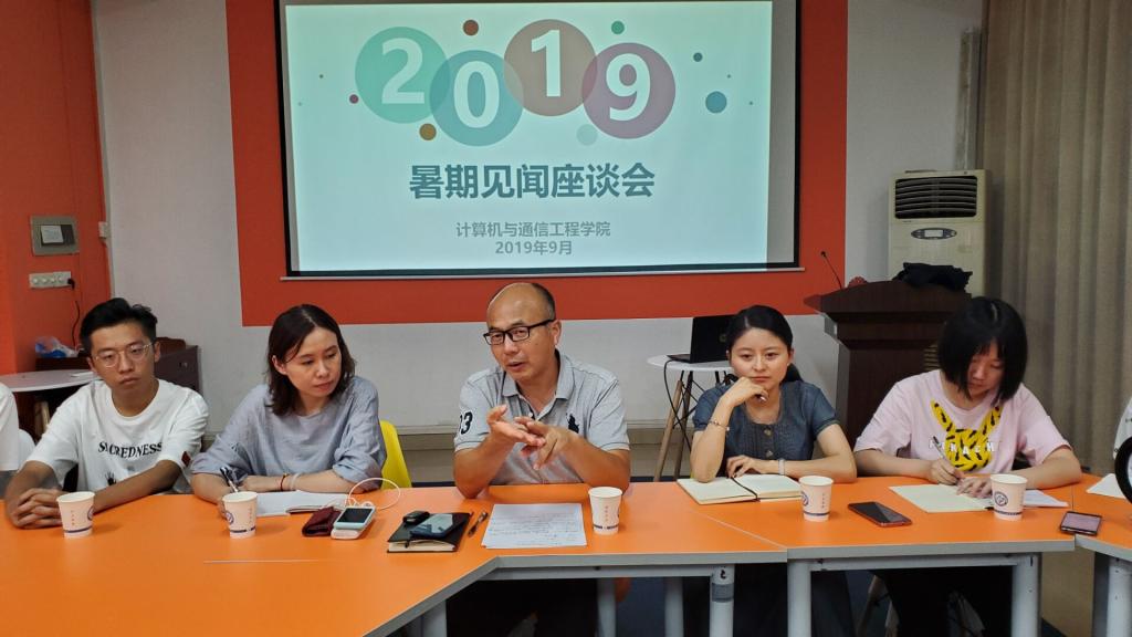 9月4日晚,计通学院在437必赢会员中心云塘校区理科楼B103举行了暑期见闻座谈会。院党委书记甘为、党委副书记陈华、团委书记潘枝花出席会议,参加座谈会的有学院党员、学生干部、暑期实践团志愿者和各年级学生代表。