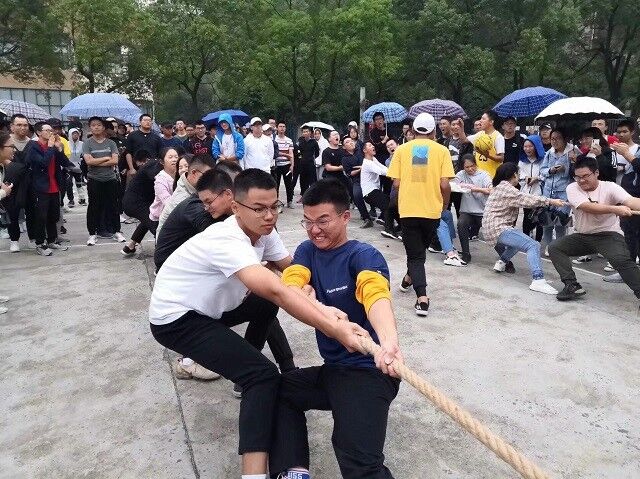 本次比赛由计算机与通信工程学院年级分会组织进行,以班级为单位组成29支参赛队伍,每支队伍限十人,采取男7、女3的比例,另替补5人。比赛前的准备工作中,各班班委负责整理本班参赛同学的信息,以确保比赛的正常进行。12:50,各班在南苑篮球场集合完毕,由王老师宣读比赛规则。13:00,拔河比赛正式开始,标准竞赛队伍两两对决,胜方进入下一轮比赛。经过层层比拼,最终的比赛成绩是––第一名:计卓190A,第二名:大数据1901,第三名:软件1902,第四名:计科1905。在比赛中,每一位同学都咬紧牙关、拼尽全力,为班级的荣誉而付出。