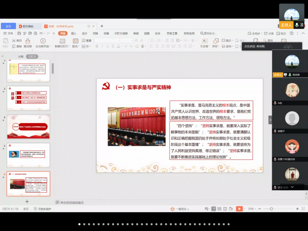 本次预备党员培训班的课程由马克思主义学院高小玫老师主讲,主要讲述的内容是习近平新时代中国特色社会主义思想的科学体系,虽然是线上课程,但是同学们热情不减,积极地参与课程的学习。
