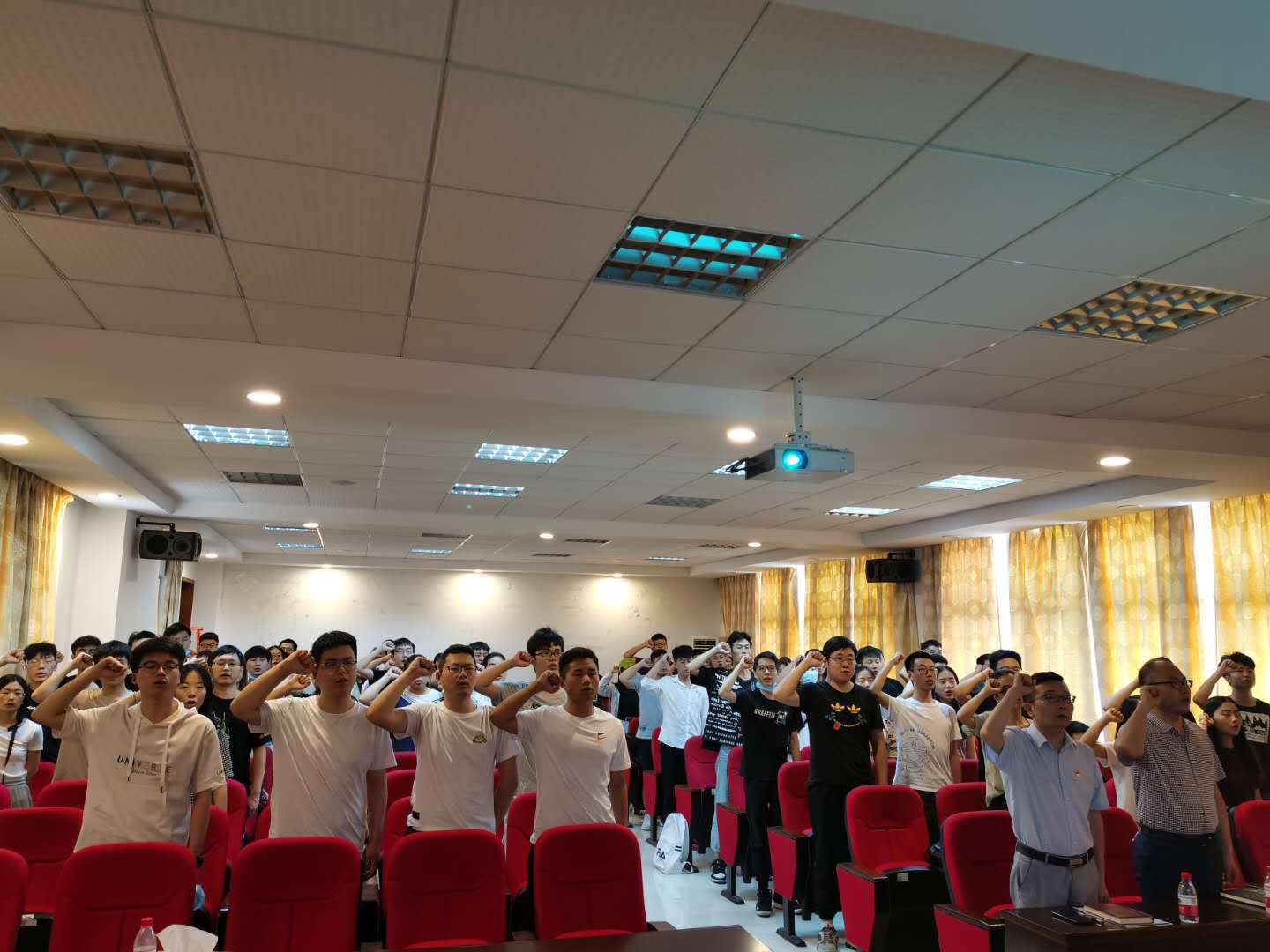 会上,首先进行了预备党员的转正宣誓,由预备党员代表本科生第二党支部的任欣淇带领宣誓,全体党员一同庄严宣誓。随后,由刘宏伟书记,为本次转正的20名毕业生党员授予党徽,并合影留念。最后,由刘宏伟书记为毕业生党员致辞,他指出,不管毕业生党员在哪里都不应该忘记自己的党员身份,都要保持斗争精神,无论身处何处,也不能忘了自己的母校,也希望各位毕业生党员有空回来看看。