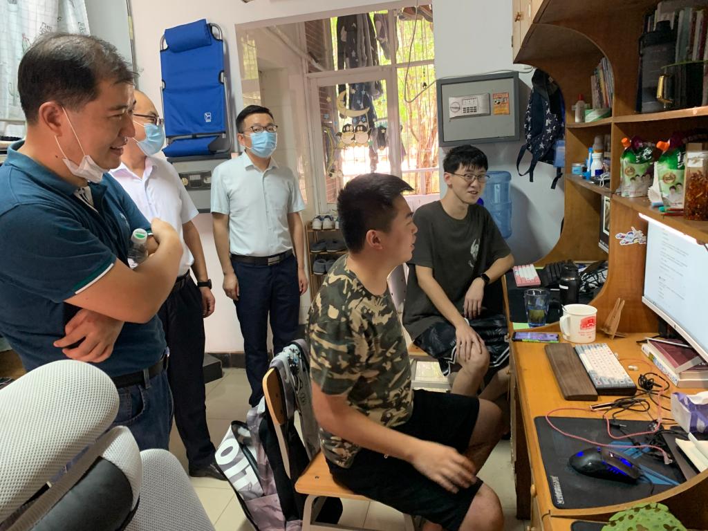 随着秋季学期开学,必赢官网同学陆续返校。为进一步做好疫情防控常态化阶段学生教育管理工作,8月24日,计通学院党委副书记(主持工作)刘宏伟、院长王进、党委副书记涂道勇带领学生辅导员前往学生宿舍看望返校学生,了解学生返校后思想、学习、生活等情况。