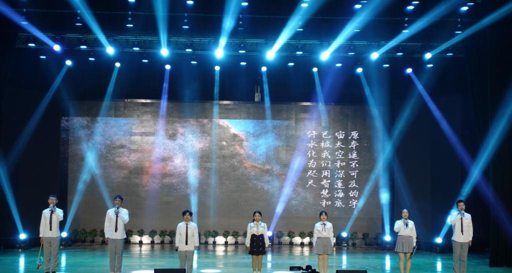 本次计通学院的诗题为《厉害了,我的国》,以科技强国路上标志性的事件叙述了中国由百废待兴到繁荣昌盛的过程。从儿时的跳房子游戏引入,到港珠澳大桥正式完工、从收音机到探索宇宙奥秘的“天眼”射电望远镜、从“大哥大”到5G智能手机万物互联......蛟龙潜水7000米,卫星上天比苍穹,中国用短短40年为科技强国定义。计通学子别具一格的表演、生动活泼的语言、真挚深情的朗诵,获得了评委的认可,结尾“厉害了我的国;厉害了新时代;厉害了奔跑在逐梦路上的新青年”,展现了中华儿女的自豪,将比赛推向高潮。