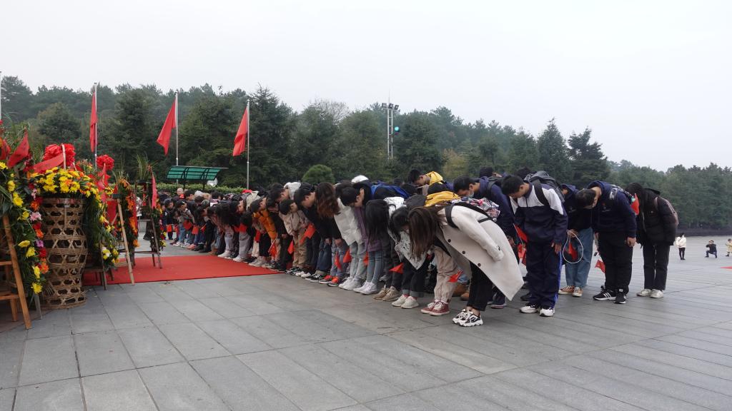 在毛主席纪念铜像前,同学们立正注目,行鞠躬礼;学生代表刘林武、苏源向毛主席铜像敬献鲜花。随后,预备党员举行入党宣誓仪式,团员重温入团誓词。纪念广场上,党团成员挥舞着国旗,唱起《我的祖国》《歌唱祖国》等歌曲。在毛泽东同志故居、毛主席纪念馆,同学们瞻仰着伟人生平,汲取强大的精神力量。