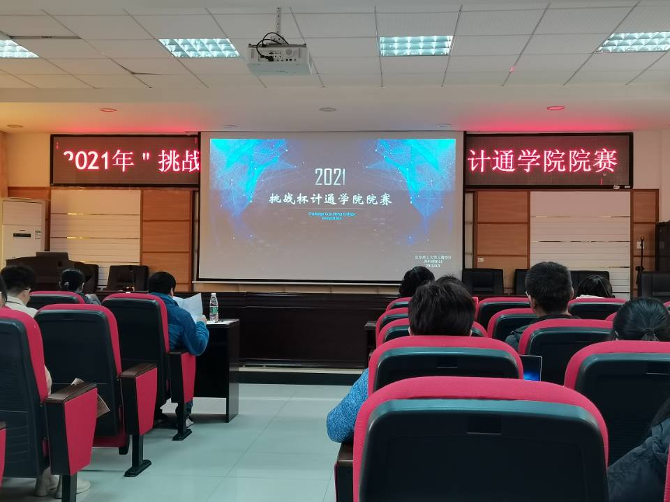 为进一步培养广大学生的科创精神,引导学生踊跃投身创新驱动发展战略,促进学院双创事业蓬勃发展。3月2日晚上,计通学院在理科楼B311举办了2021年“挑战杯”计通学院院赛。本次比赛的评委由余飞老师,史长琼老师,蔡碧野老师以及潘枝花老师担任,18、19级双创委员到场观赛。