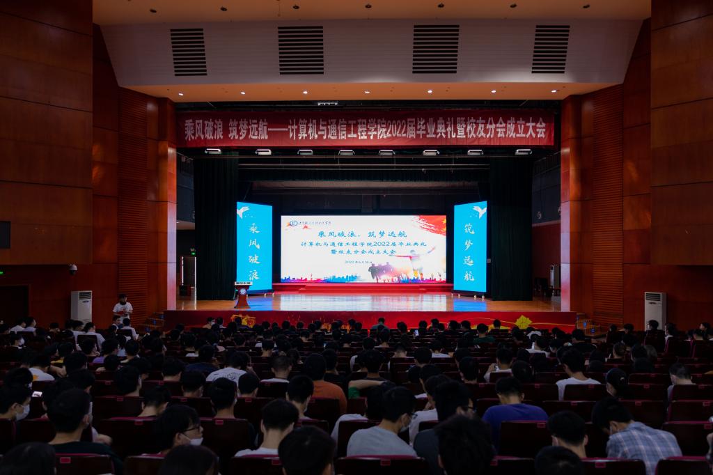 6月16日下午,计通学院于云塘校区大会堂举办“乘风破浪,筑梦远航”2022届毕业典礼暨校友分会成立大会。校友中心领导王静琦、关工委领导蔡立新、计通学院党委书记孔伟红、院长张锦、党委副书记王觊靖、副院长夏卓群、章登勇以及各毕业班班主任、任课老师、学工办老师出席,2022届全体毕业生参加,大会由金祎萌主持。