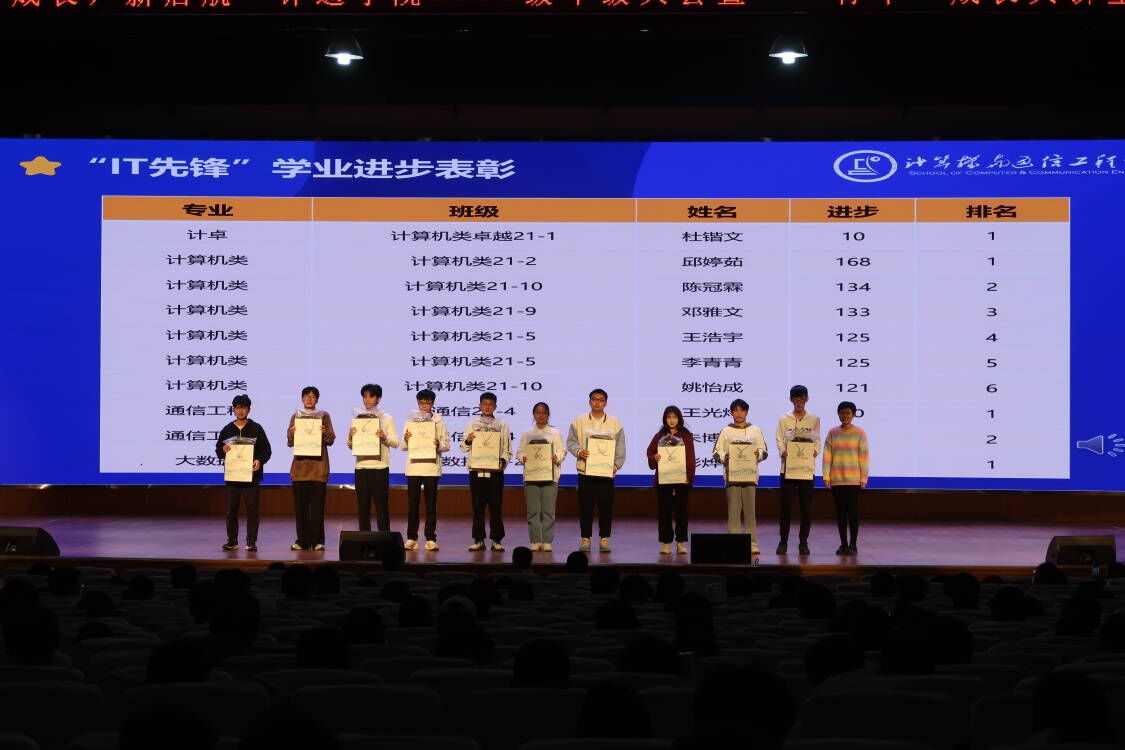 潘枝花对大一下学期的问卷调研情况做了通报,调研主要围绕同学们对大一学习生活的满意度、理想目标、自我定位等问题展开,并针对转专业同学的学习和适应问题进行了解答。随后,潘枝花对21级大一下学期的学情进行了详细分析和通报,从各科课程合格率、班级平均分、挂科情况等全方面展示了同学们大一下学期的学业表现,并表彰了“IT先锋”学业达人,奖励了学业进步最大的同学。