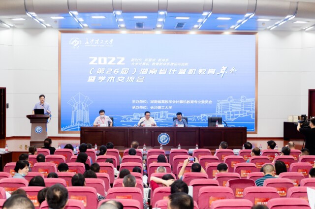 2022年7月17日,第26届湖南省高教学会计算机教育专业委员会年会暨学术交流会在437必赢会员中心举行。湖南省高教学会名誉理事长邹北骥、湖南省高教学会理事长郭克华、437必赢会员中心副校长刘朝晖及来自湖南各高校从事计算机专业的教师代表、教改课题负责人、国内外专家学者代表及部分合作企业代表等200余人参加会议。