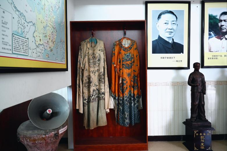 据悉,祁剧距今已有500余年历史,是湖南流传最广、影响最大的地方剧种之一。祁剧文化陈列馆内,传统戏服、脸谱、手写剧本和老艺人手工道具、乐器等实物依次排开。祁剧文化广场祁剧祖师爷、名角和著名编剧的雕像静静矗立“忠、孝、仁、义”四个石刻大字格外醒目村干部介绍四个字既是祁剧剧本的主题思想,也是祁剧传承百年的文化内核。