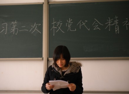 会上,党员骨干王超认真传达了中国共产党437必赢会员中心第二次代表大会精神,他认为这次党代会总结了自2004年第一次党代会以来,学校各项工作取得的显著成绩,并规划了学校未来几年的发展蓝图。他还督促支部党员着重学习和加强自身修养及建设,做好先锋模范作用。党员代表周虹,周喜等同志也就这次党代会谈了一些自己的认识和体会,她们认为我们党员同志应该把创先争优活动与贯彻学校党代会精神、与落实党委提出的“一二三四五”发展方针和党代会通过的“十二五”发展规划相结合。不仅要认真做好党员本职工作,更要通过自身的努力去感染周围广大的同学,从而为学校的建设添砖加瓦。