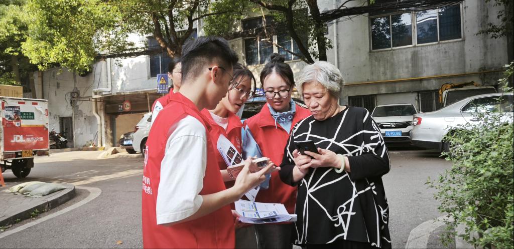 随后,支部成员深入涂新社区将专业知识与志愿服务结合开展"银龄守护"专项行动。在社区街巷,针对老年人面临的"数字鸿沟"与新型诈骗威胁,党员们通过"情景模拟+实景教学"模式还原冒充公检法、虚假投资理财等典型诈骗场景,提升老年群体风险识别能力;组建"1+1"帮扶小组,开展智能手机操作、电子医保激活等适老化服务。活动现场累计服务居民80余人次,发放防诈手册120余份,得到社区群众高度评价。